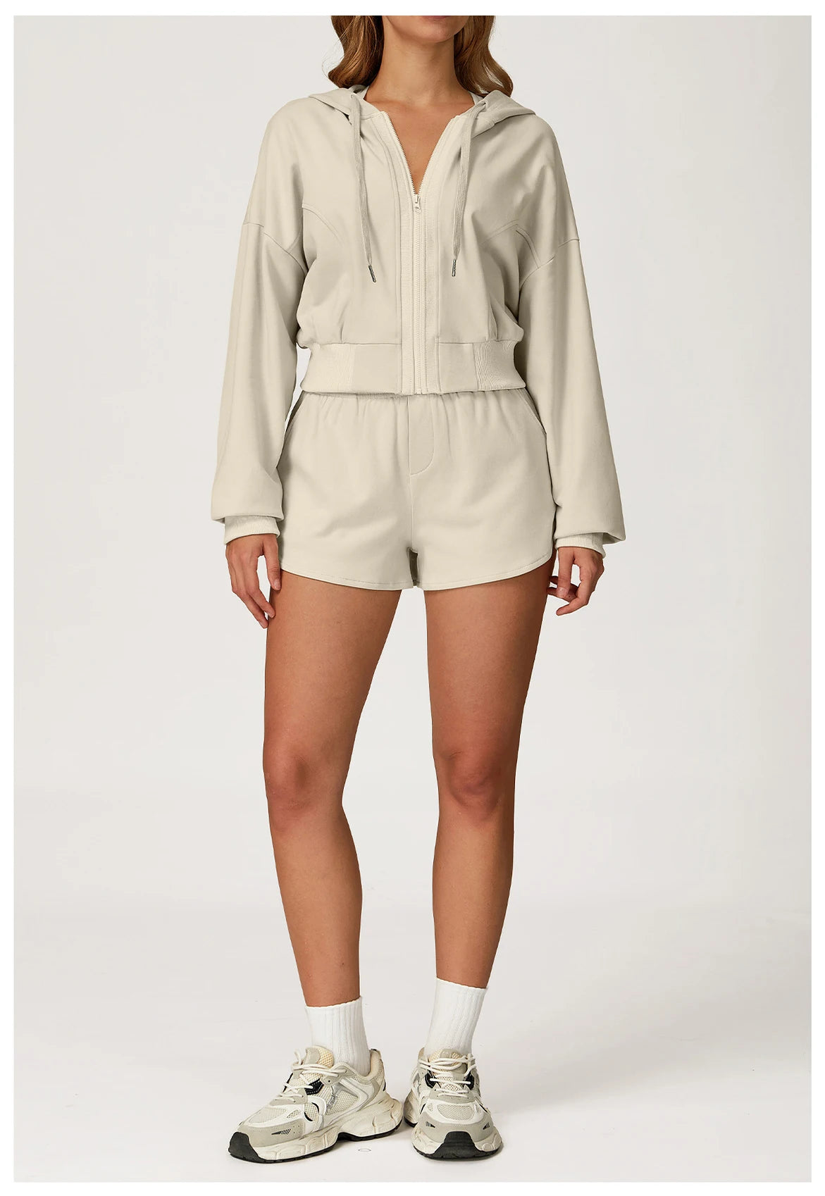 Winter 2-piece Sports Hoodie Set Women's Tracksuit Zipper Loose Long Sleeved Hooded Slimming Yoga Pants Set Running Fitness Set