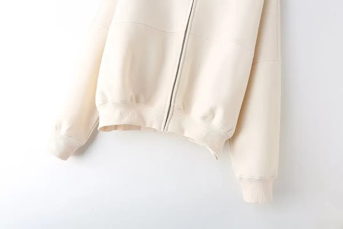 Zipper Pilot Jacket Sweatshirt Style Loose High Waist Fleece Pants Cotton Streetwear Series Women's Fashion Set